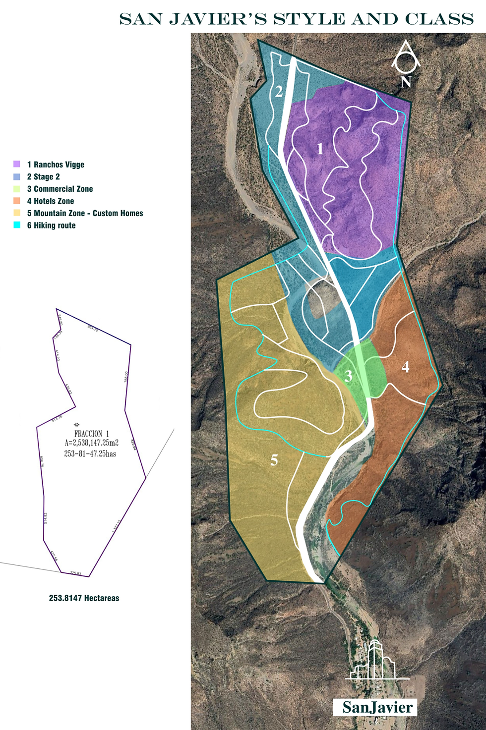 La Cumbre de San Javier encompasses approximately 253.8 hectares (over 627 acres), thoughtfully organized by a master plan that respects both the terrain and its historical use.